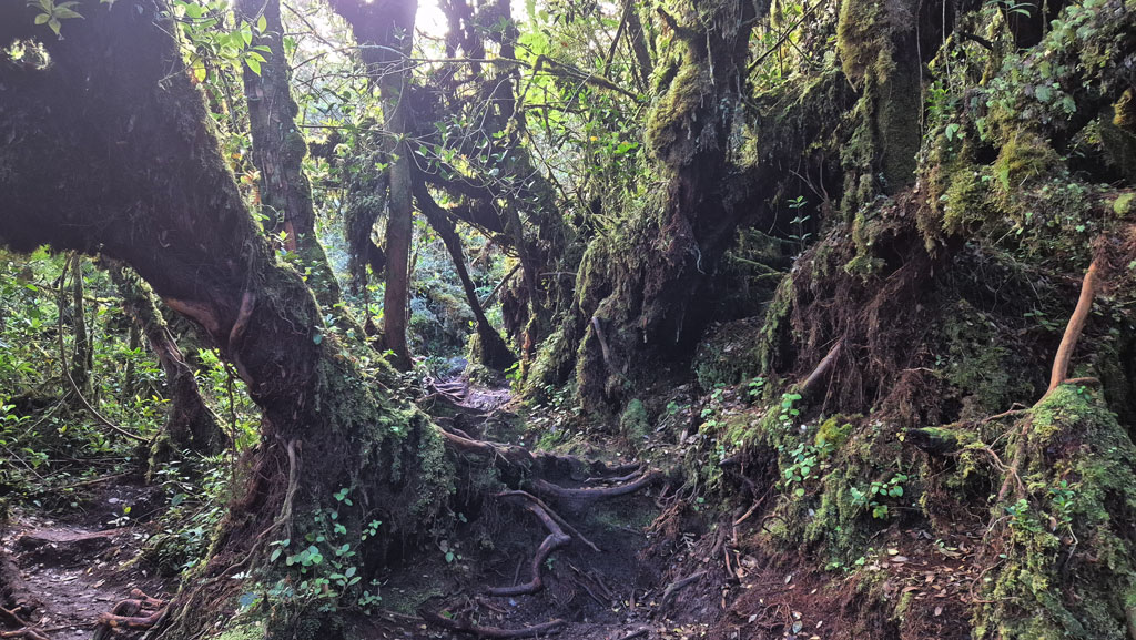 Am ersten Tag sind wir den Trail 10, gefolgt von Trail 6, gewandert. Ein abenteuerlicher, steiler Weg über Baumwurzeln hinauf auf den Berg. Von dort aus habt ihr eine atemberaubende Aussicht über das gesamte Tal. Wenn ihr dort nach rechts blickt, könnt ihr bereits euer Ziel von Trail 6 erkennen.
