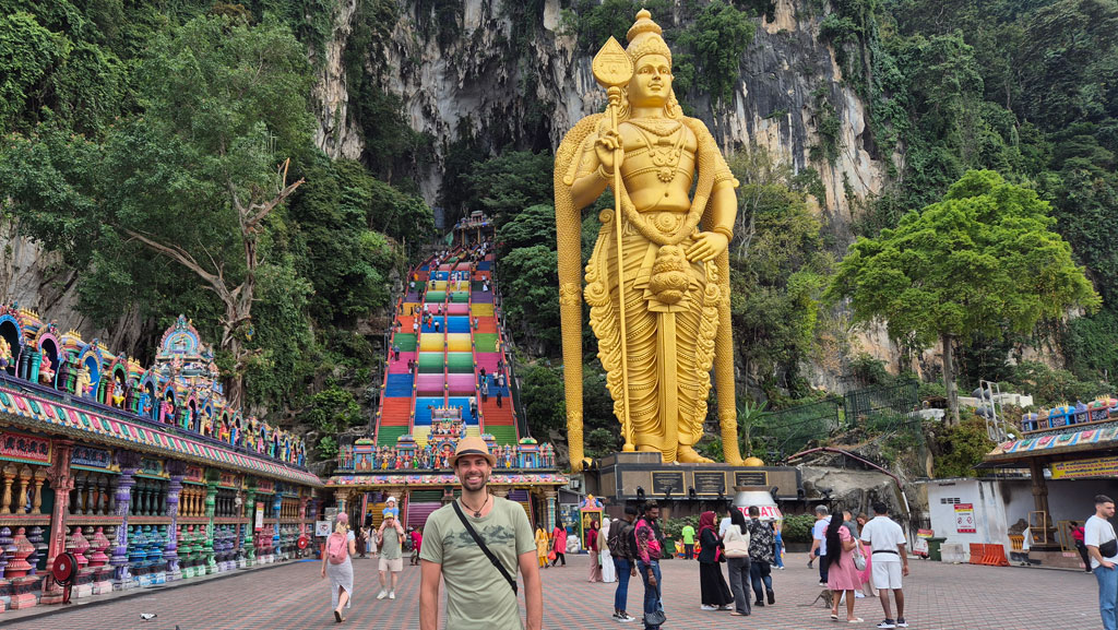 An unserem letzten Tag haben wir uns am frühen Morgen ein Grab zu den Batu Caves genommen. Für die Batu Caves könnt ihr etwa zwei Stunden einplanen – das sollte vollkommen ausreichen. Man kann die bunten Stufen erklimmen, schöne Fotos und Videos von den Affen und dem Tempel machen. Oben in den Höhlen angekommen, war ich persönlich etwas enttäuscht.