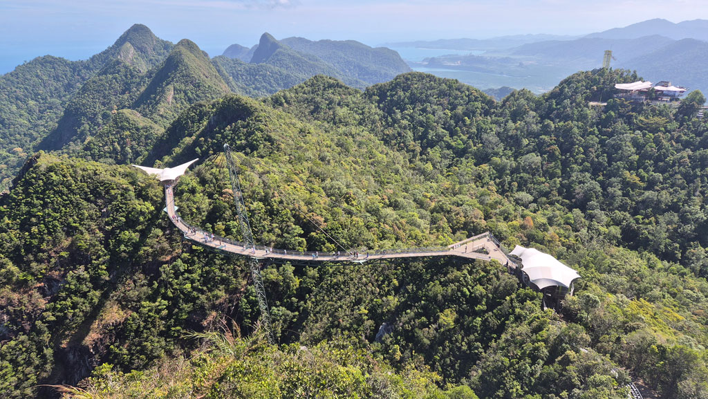 Was ihr ebenfalls unbedingt einplanen solltet, ist die Langkawi SkyCab mit der Sky Bridge. Hierfür gibt es ebenfalls ein Kombiticket. Das Eagle Nest muss man nicht zwingend buchen – wichtig ist die Sky Bridge sowie die kostenlosen Plattformen oberhalb der Brücke. Am besten fahrt ihr zunächst bis zur Mittelstation und macht dort einige Fotos auf der Aussichtsplattform. Anschließend geht es weiter Richtung Eagle Nest, lediglich um Bilder der Sky Bridge zu machen, bevor ihr mit der SkyCab weiter nach oben fahrt. Oben angekommen, lauft ihr über die Sky Bridge und wieder zurück. Anschließend geht es weiter zu den beiden Plattformen, von welchen ihr eine unglaubliche Aussicht genießen könnt.